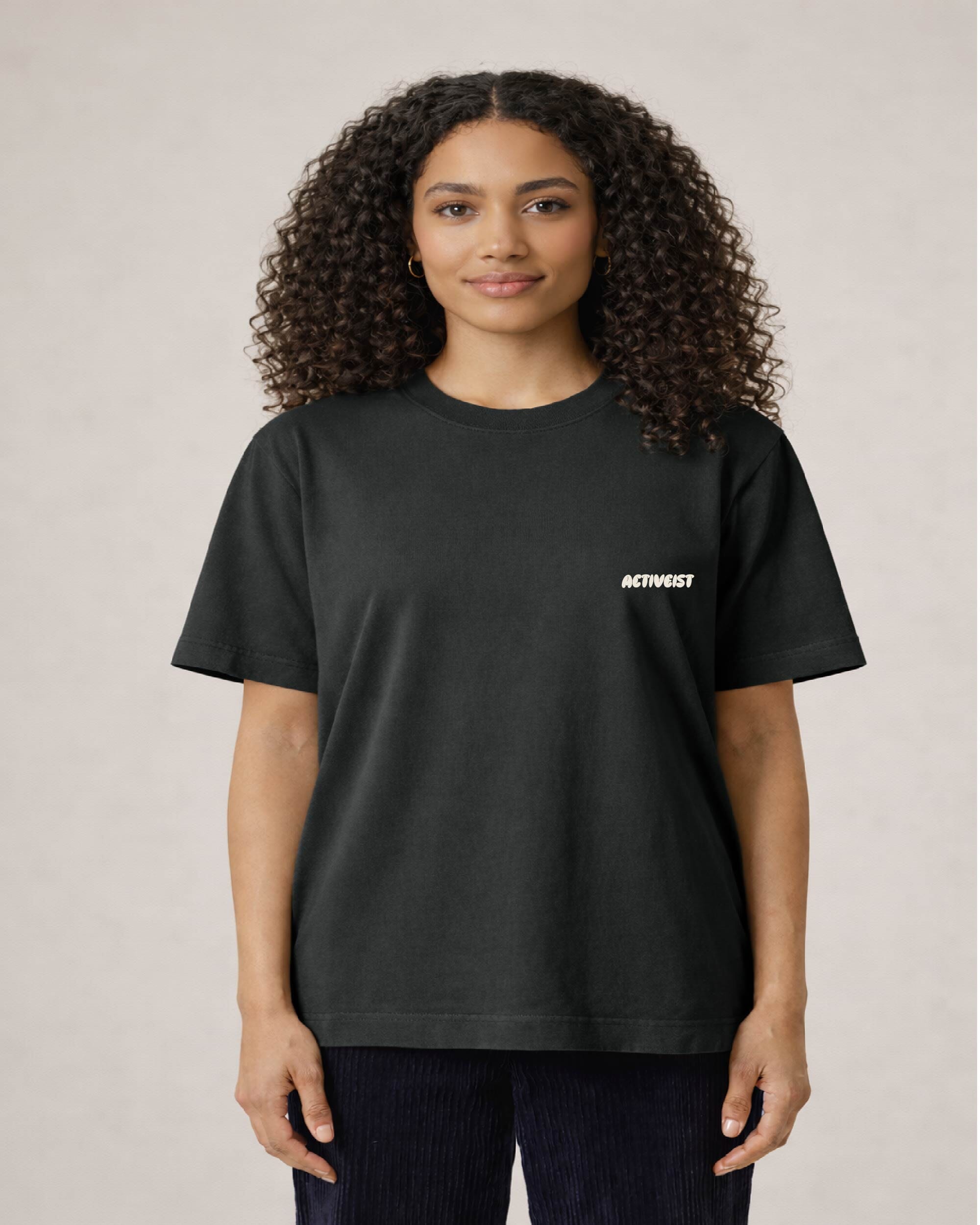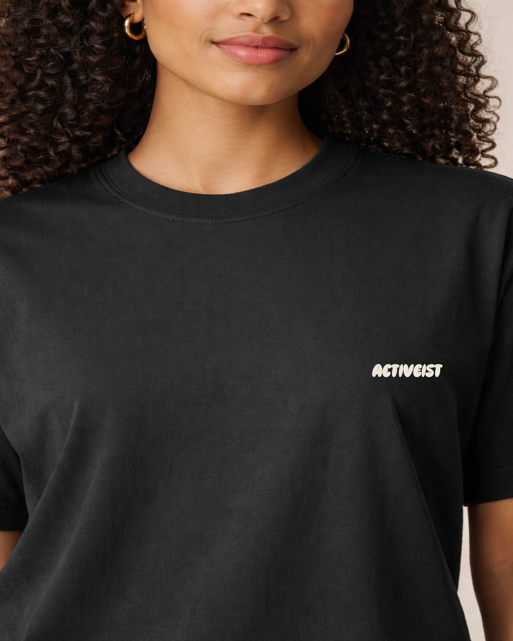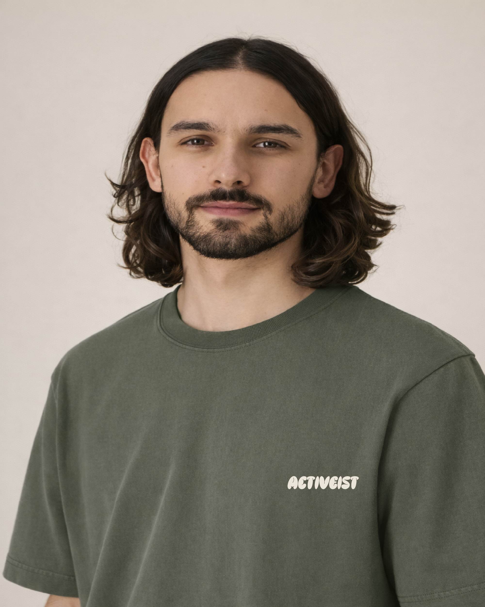 The Homegrown Hope Tee is cut from substantial lightweight cotton — earthy, composed, and enduring. The back features the bold Activeist mark layered with the watermelon logo, reimagined as a contemporary emblem of identity and resilience.